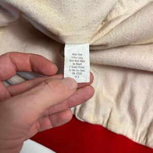- Condition: In fair, vintage condition with extensive markings and patches of discoloration throughout. The interior lining has extensive yellowing/discoloration and the exterior has skipped and pulled threads. Please see close-ups and photos with hand pointing.
