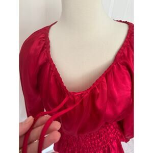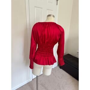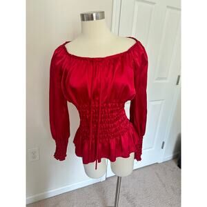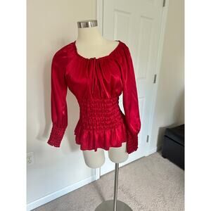 Vintage red Allison Taylor top with ruching, size medium. Adjustable neckline, very flexible ruching