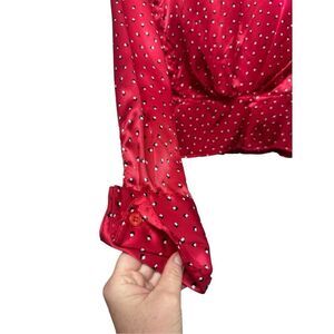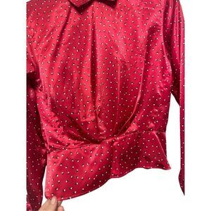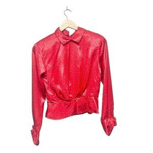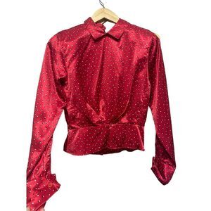 Vintage red collard button back silk like blouse sz S