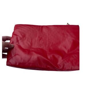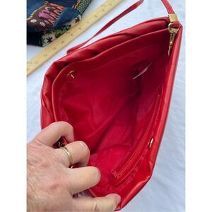 Vintage red faux leather Holiday Fair Inc crossbody bag . Top zipper and ribbed fabric lining.