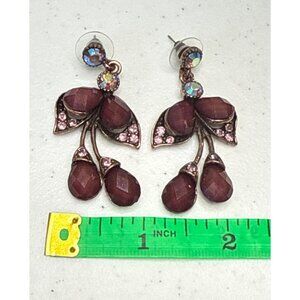 Vintage red purple crystals dangle pierced earrings OS