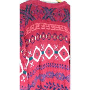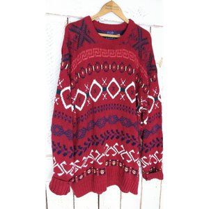 Vintage red slouchy knit snow cabin sweater/90s cotton sweater/tribal Aztec prin
