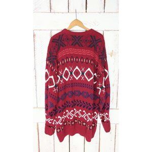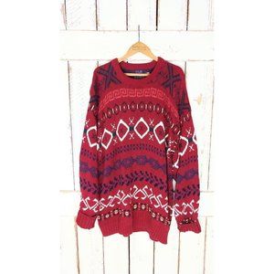 Vintage red slouchy knit snow cabin sweater/90s cotton sweater/tribal Aztec print pullover sweater/xlarge