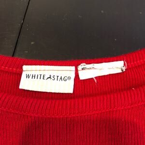 Vintage White Stag red white blue American flag heart sleeveless sweater vest. Pullover style with round neckline. Sleeveless. American flag heart on front. Size and material content tag have been removed. Best fits size 2X based on below measurements. Excellent preowned condition. Minor wash wear.