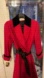 Vintage red wool black velvet trim floor length long large lapel coat 11
