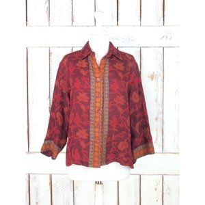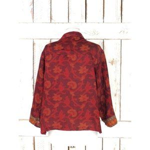 Vintage red/maroon/dark red woven floral wool boho festival blouse/gypsy/hippie Indian button down shirt