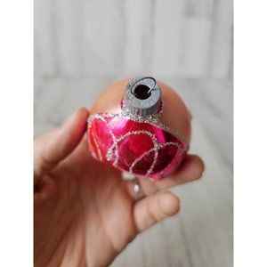 Vintage reflector pink teardrop glass ornament Xmas tree
