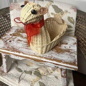 Adorable, Vintage reindeer, wicker basket with button eyes and red button nose.. 8” x 4” wide and 7.5” tall