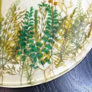 Round plate art piece featuring butterflies and botanical elements. Perfect for nature lovers.