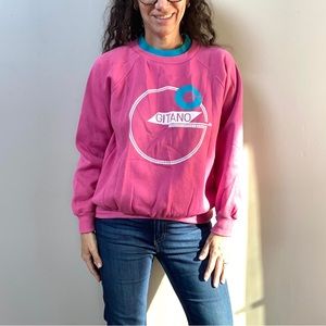 Vintage retro 80s pink teal spell out Gitano pullover sweatshirt Sz Large