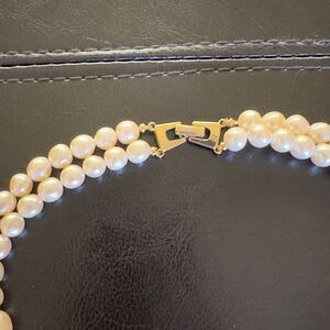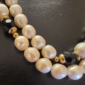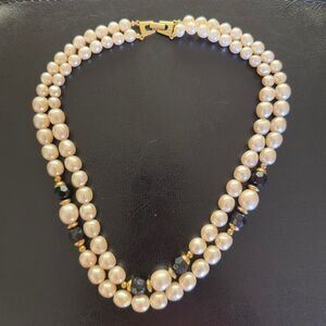 Vintage retro faux Pearl w Black Bead 2 Strand Necklace