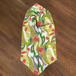 Vintage retro look green, purple, pink & white swirl print long polyester(silk feel) scarf