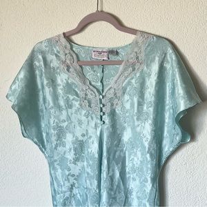Vintage retro pastel silky lace trim floral lingerie nightgown dress - labeled size small/medium - good vintage condition