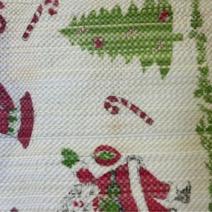 Vintage retro rug 24”x43” Mid Century styling. Santa, bells, candy canes, trees
