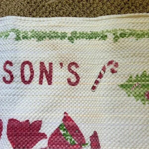 GUC Vintage retro rug 24”x43” Mid Century styling. Santa, bells, candy canes, trees Season’s Greetings