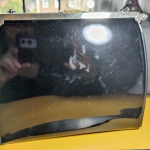This is an amazing vintage purse with a removable outer shell. You can wear the tapestry side, or flip it around to reveal a black patent side. Or leave it off for a bemberg fabric finish. There's a bit of light fading on the edges of the fabric and a few wear marks on the patent. Cute lucite handle and kiss clasp on top. I don't see a maker's tag on this. I used it quite a few times but it's still in very nice condition for it's age. It's been sitting in my closet for too long and needs someone to show it some love. For some reason Poshmark cropped the photos in tightly, so if you want more photos, please ask!