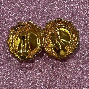 Stunning vintage clip on earrings. These earring SPARKLE like crazy!!! Absolutely beautiful, give off a luxe vibe! Small little yellow rubber backing missing from one of the clips. Please see pictures for more details.