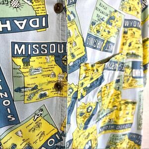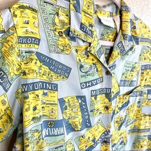 Vintage road trip states button down Liz Claiborne blue and yellow blouse size M