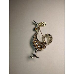 Vintage rooster brooch with pink fuchsia rhinestones in a goldtone metal