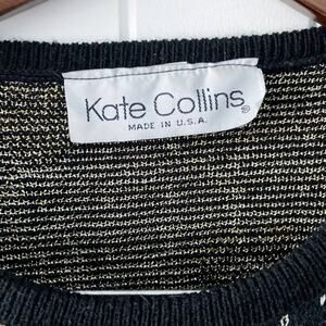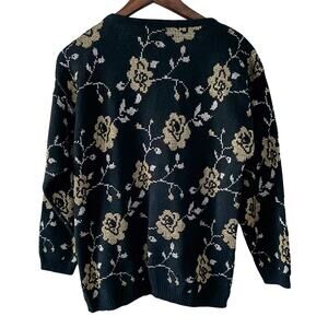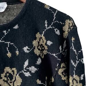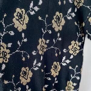 Vintage knit crewneck sweater with a metallic gold and silver floral rose pattern! Sparkly metallic flowers & vines on a dark background - fun, pretty, & darkly romantic 🖤💛 Made in the USA back in its day