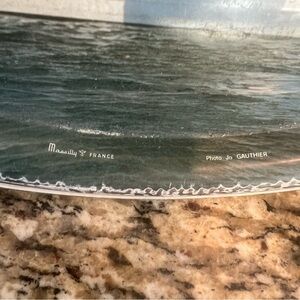 Vintage round metal serving tray with picture of sailboat by Jo Gauthier. 13” diameter