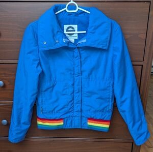 Vintage royal blue with rainbow trime Ski Jacket - sz medium, Saska