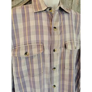 Vintage rubber button Magellan purple long sleeve thick cotton button up Large *
