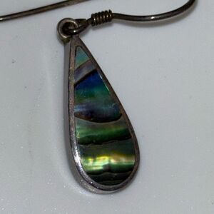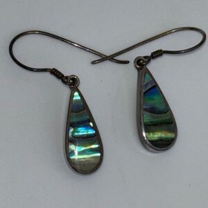 Vintage sajen silver & abalone rainbow dangle drop earrings