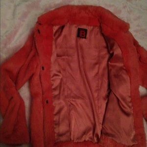 Super soft! super color! Vintage rabbit fur in a pinky salmon shade. Bright pink satin lining. Pristine vintage condition! Add a pop of color to your fall wardrobe.