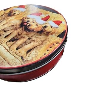 Vintage santa Hat Lab puppies cookie tin 6.5" Holiday Christmas