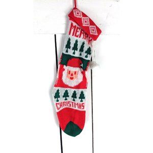 Vintage santa woven slouchy knit Santa Claus Christmas stocking/sweater xmas sock/retro xmas sock