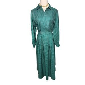 Beautiful vintage 80s Cambridge Spirit ditzy print matching button down blouse & maxi skirt secretary matching set!