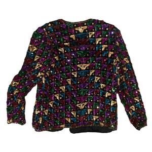 Vintage sequin Laurence Kazar blazer woman’s size medium silk rainbow