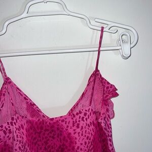 Chic fuchsia maxi dress with delicate ruffles. Features a flattering silhouette. Ideal for special occasions. Pretty for dances, formals, wedding guests, night out, etc.