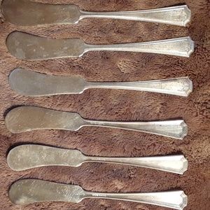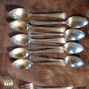36 pcs silverware silver plate, 7 knives, 8 forks, 6 butter knives, 9 spoons, 5 smaller forks special, 1 normal small fork. condition: used, can use some polish, good deal