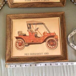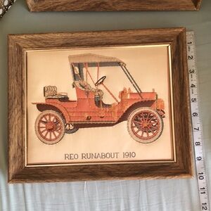 Vintage set of 2 Reo Runabout 1910 & Ford Model T 1909 fabric print wall art