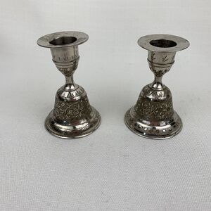 Vintage set of 2 Silver Candle stick Holders ZY India World Gift Bell Shaped