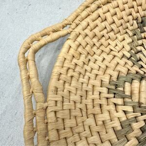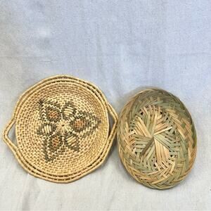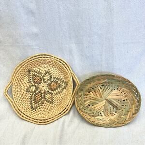 Vintage set of 2 southwest boho woven wicker basket/tray in natural & greens
