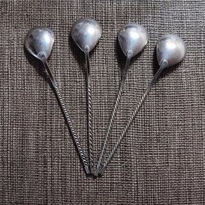 Vintage set of 4 Melchior Soviet Russian twisted handle coffee spoons
