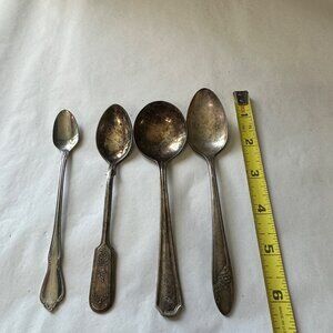 Vintage set of 4 spoons 6 inch length 3 plated 1 stainless 2 Oneida