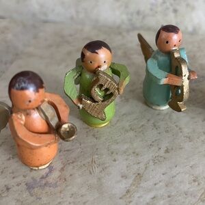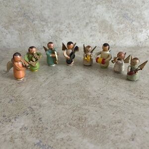 Vintage set of 8 Miniature Wooden Angel Musicians Japan