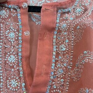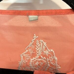 Vintage sheer embroidered hand stitched women’s bohemian blouse, coral top xl