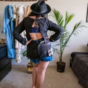Vintage sheer long sleeve blouse, button open back
