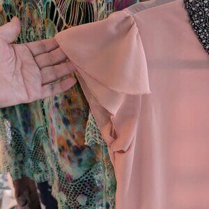 Vintage sheer soft chiffon top with beaded neckline L/XL