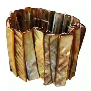 Vintage shell bracelet stretchy cuff boho shiny