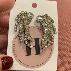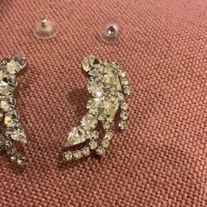 Vintage shiny silver & crystal stone earrings.. Pierced