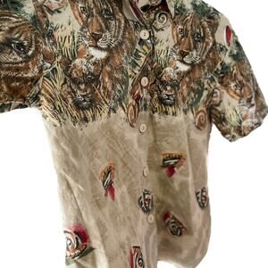Vintage short sleeved button down safari shirt tiger & cub jungle print size M/L