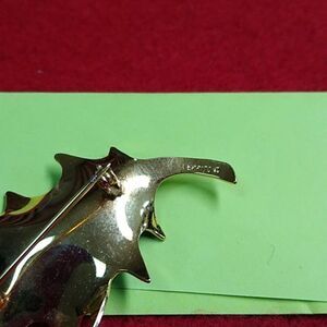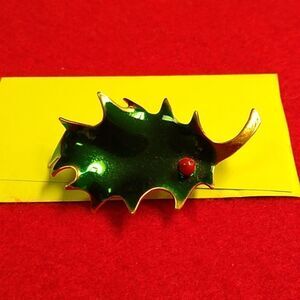 Vintage signed Cerrito Green Enamel Holly Leaf w/Red Berry Cottagecore