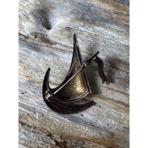 Vintage signed Ivar T Holth Norway Sterling Silver and Enamel Sailboat Brooch Pi