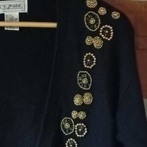 Vintage silk angora lambswool soft beaded 80's black gold M